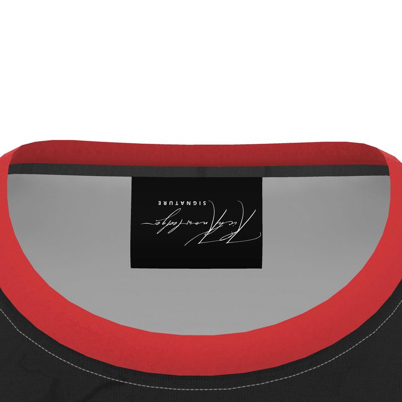 These made-to-measure t-shirts are available from XS to 2XL and are entirely made by hand, to order. This fully bespoke t-shirt has an edge-to-edge print and your choice of five neck rib colors.